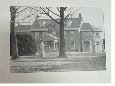 In 1992, thoughtful east and west wing additions expanded the home while respecting its heritage character — earning a 1994 residential restoration award. Today, the legible Georgian features remain: a rectangular 2½-story stone volume, gable roof with dormers, symmetrical five-bay façade, monumental projecting central entrance with pediment, corner chains, and sash windows.